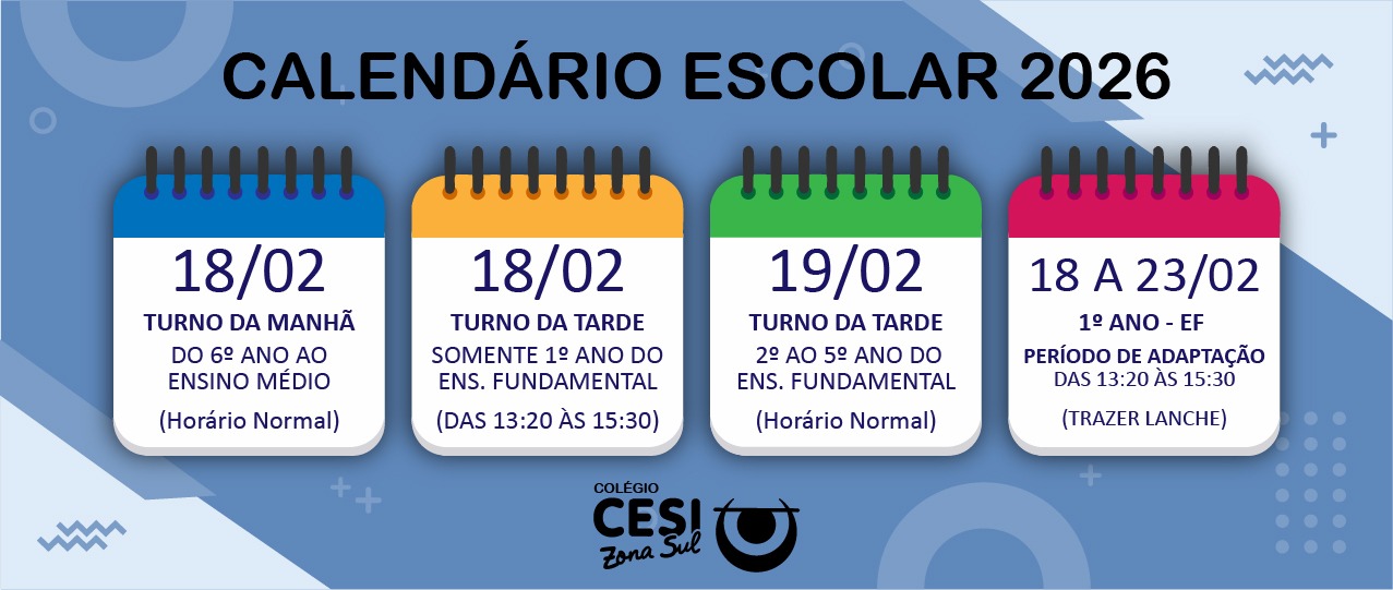 Algumas datas poderão sofrer alterações ao longo do ano, em função de ajustes no calendário escolar, condições climáticas ou outras situações avaliadas pela Direção do Colégio CESI Zona Sul. Sempre que houver qualquer mudança, a comunidade escolar será informada com antecedência pelos nossos canais oficiais.
