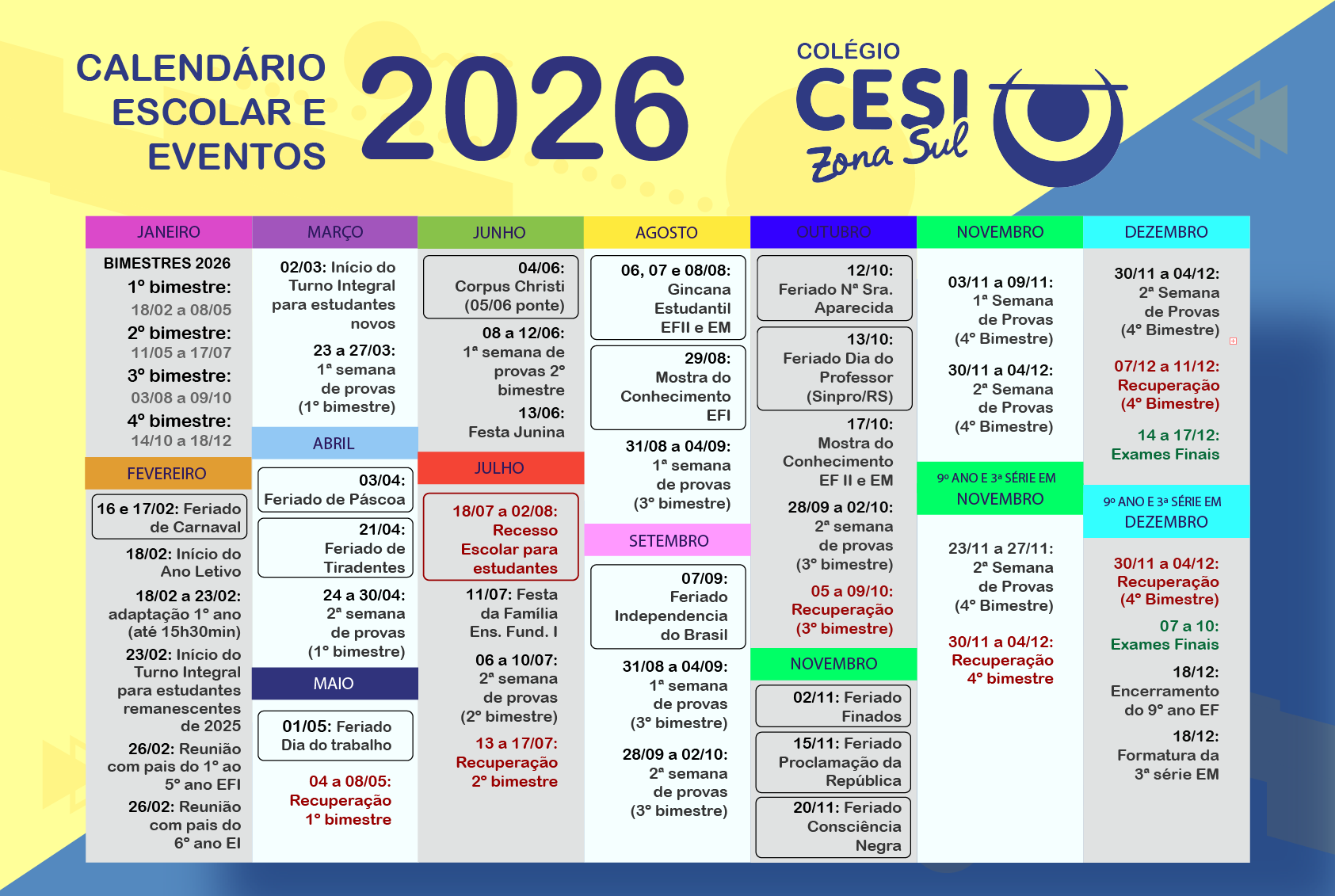 📅 Calendário Anual – CESI Zona Sul